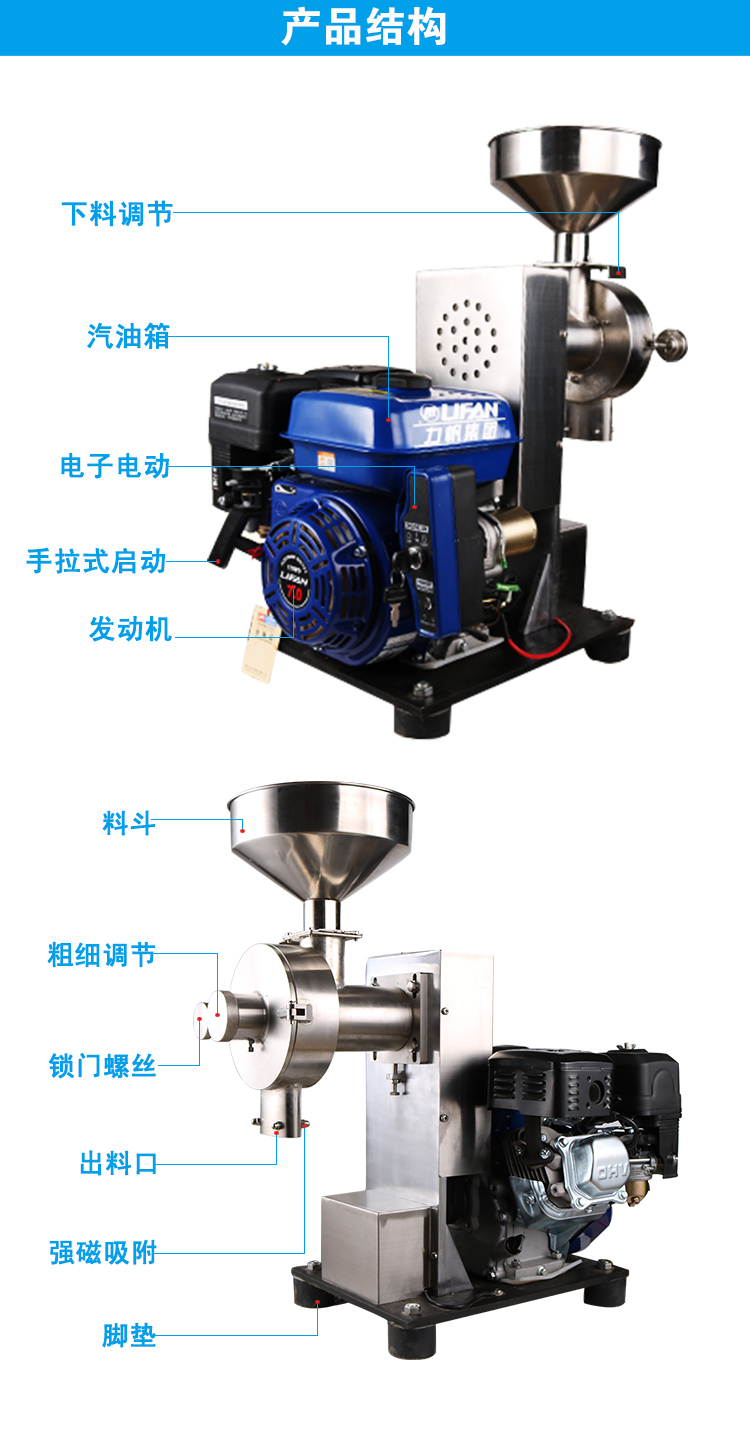 乐玩首页(中国)网页版汽油磨粉机工厂直供价:3600元 广州市乐玩首页(中国)网页版机械通过质量监督检验合格产品,本机上市以来客户操作使用上所发现的一些实际问题, 我司组织研发、技术队伍在设计、材质、性能、外观,进行反复试验,多次改进、改良,不断提高机器零配件 加工工艺,不断改善机器装配工艺流程,基本保持1.5—2年对产品更新换代一次,目前在市场上的主打产品为 第三代机型,真正、彻底解决磨粉不够细腻、卡机、产量低、噪音大等其他公司同类设备的通病,确保进出料 顺畅,噪音小,使机器能满足多数客户的使用需求。 2012年7月,乐玩首页(中国)网页版机械为满足流动作业经营者的使用要求,研发制造了汽油机磨粉机,即“汽油发动机 +磨粉机”,不需连接电源,通过汽油发动机传动,适合流动式磨粉作业。本机可通过控制发动机油门的大小, 调节转速。 ![]() ![]() 我公司对配件的选用一直坚持更优、更好的原则,坚决杜绝劣质、低价的配件。本机整机(含汽油机)均保修一年。 我公司是生产厂家,相对于其他贸易商或者网店,我公司有强大的技术、人员保障和完善周到的售后服务体系,为 广大客户提供最优质的产品和终身的维修售后服务,解除客户的后顾之忧:保修期内属于质量问题,公司免费提供 配件和维修服务;超出保修期限或保修范围,公司也仅收取配件成本费。 ![]() 主要性能特点: 1、机身由304不锈钢铸造和精密加工而成,美观大方、不生锈,符合GMP要求。 2、更加卫生: (1)加装了4个强磁,吸附机器运转过程中磨片磨损的铁粉,干净卫生; (2)机器磨粉腔内不用涂抹润滑油(脂),不会对所加工物料造成污染,保证了食品、药物的安全卫生。 3、提高了机器零配件加工工艺,改进了机器装配流程,噪音低、进料通畅、下料更快、不堵料,磨粉细腻、无粉尘。 4、连续投料式生产,效率高。 5、操作简单方便。 (1)只需要将动磨片套上连轴器,轻轻旋转一下就可以把动磨片安装好。 (2)操作使用机器时,调节磨粉粗细更轻松省力。 (3)磨粉腔内物料余留少。 (4)进料快慢和出料粗细均可调节。 ,特别适用流动作业。加工范围广: (1)各种粮食:芝麻、核桃、大米、黑米、黄豆、绿豆、花生、莲子、玉米、高粱、大麦、荞麦、燕麦等; (2)各种干性药材:杏仁、茯苓、红枣、芡实、枸杞、薏仁、山楂、淮山、首乌、红豆、阿胶、乳香、菟丝子、当归 、党参、黄芪等。 工作原理: 磨粉机靠两块布满齿槽的磨片相对磨动、运转,从而将物料研磨成粉末。 7、友情提示:我司是全国最早开发汽油机的生产厂家,随后一段时间,国内一些小作坊、小型加工厂,先后仿制我司