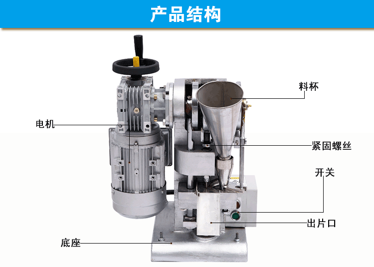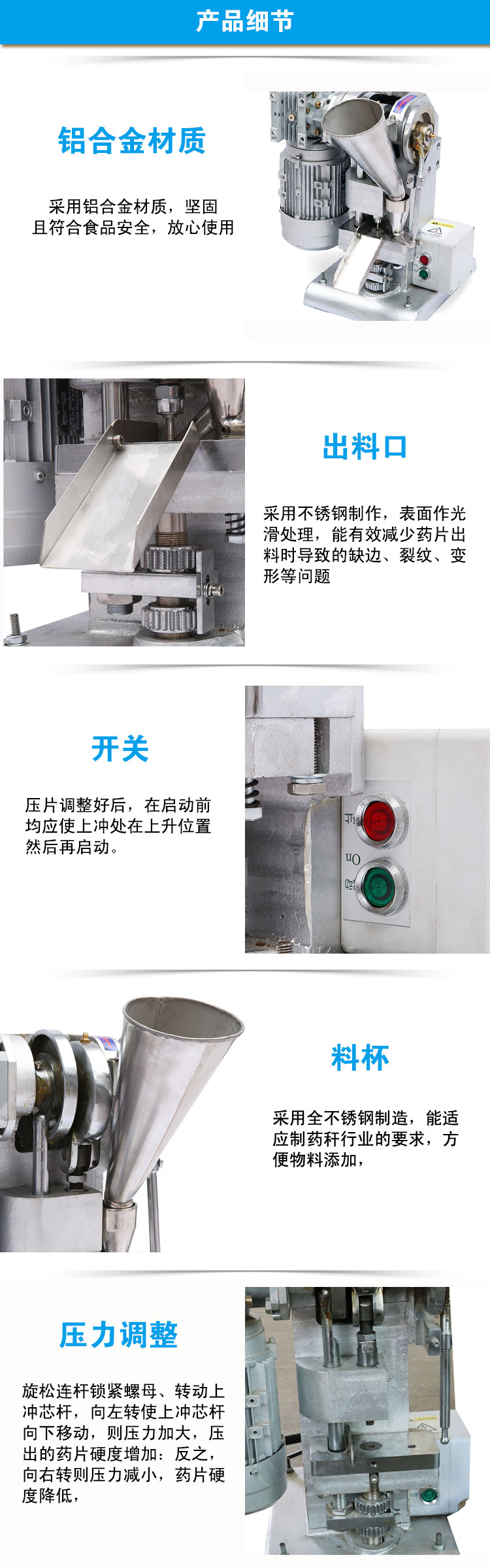 4.物料的充填深度,压片厚度均可调节,这样可以控制药片的重量。