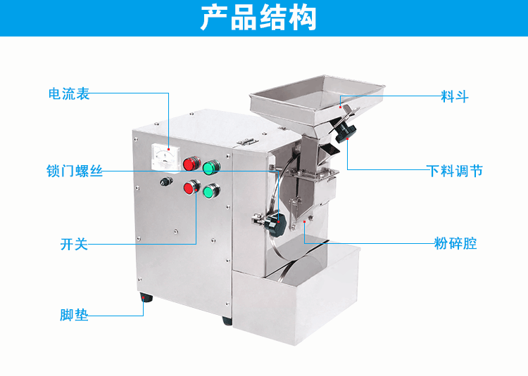 3、机器小巧,操作简便,粉碎均匀、彻底 、
